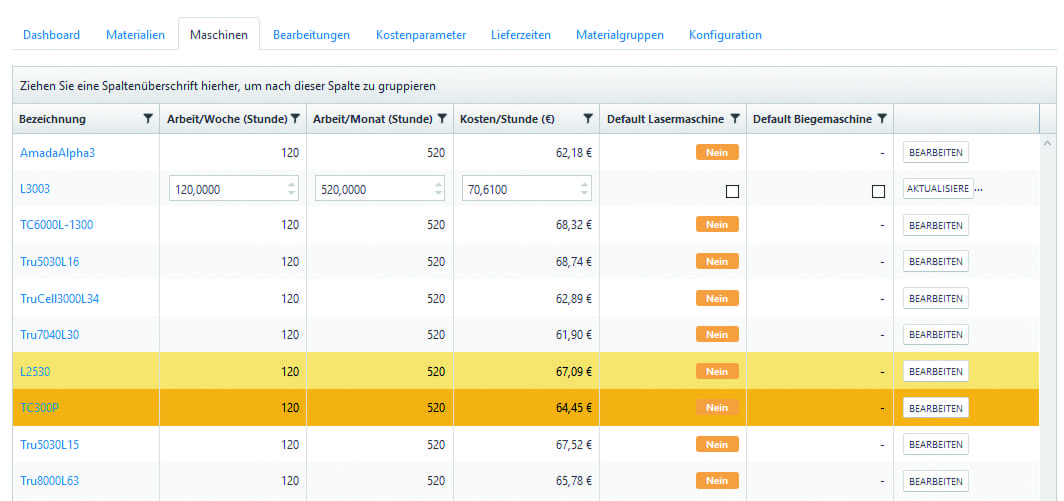 Mit dem Kalkulator von SPI werden zahlreiche Maschinenkonfigurationen geliefert. Hier ist u. a. definiert, welche Kosten einfließen (Abb. 2).