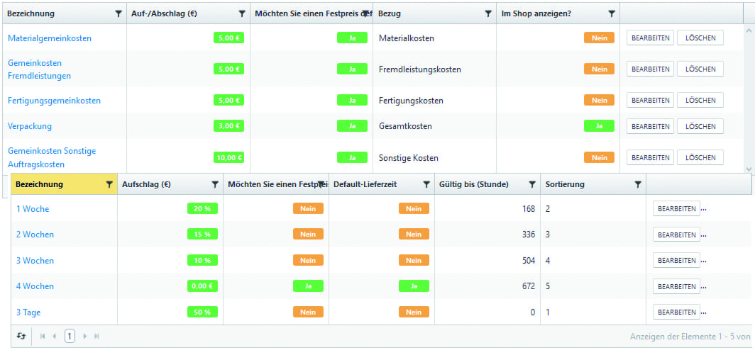 Weitere kalkulationsrelevante Parameter werden vom Anbieter initial eingerichtet und können ggf. jederzeit aktuellen Bedingungen angepasst werden (Abb. 3).