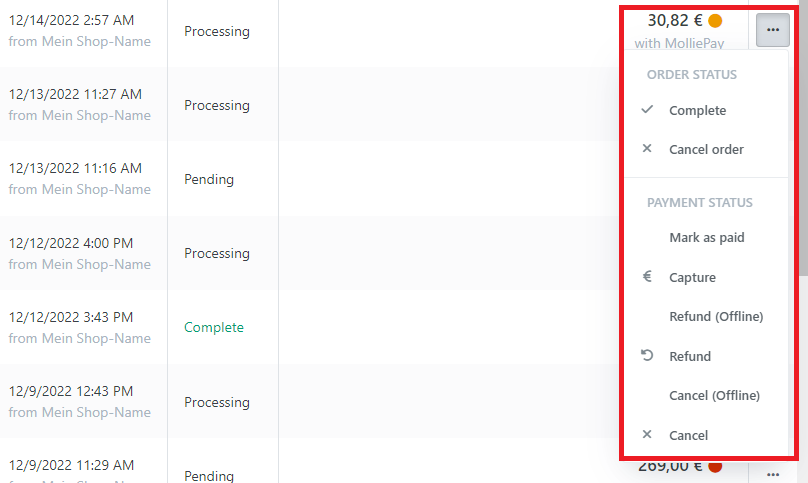 Hier können Sie als Ladenbetreiber auch den Status der Bestellung manuell bearbeiten.