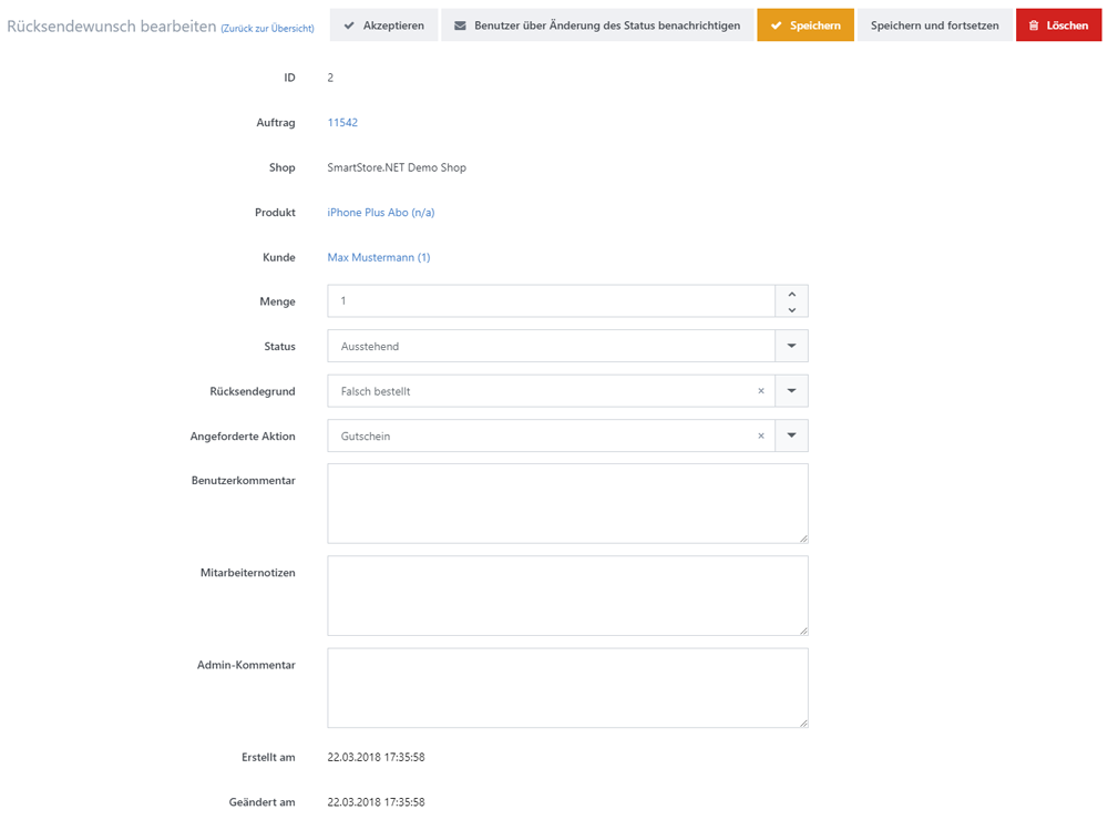 Retourenwünsche in Smartstore verwalten