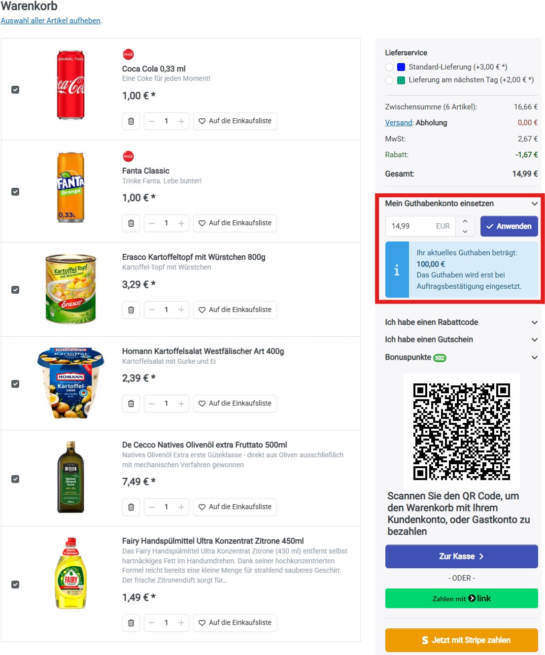 redeem it when shopping. If the credit is not sufficient, the remaining amount can be paid with another payment method. As a shop