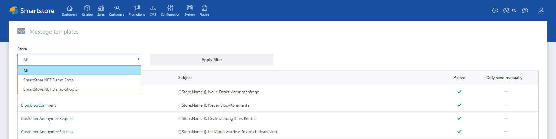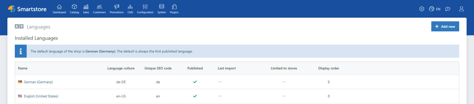 The different shop languages can also be activated for individual stores.